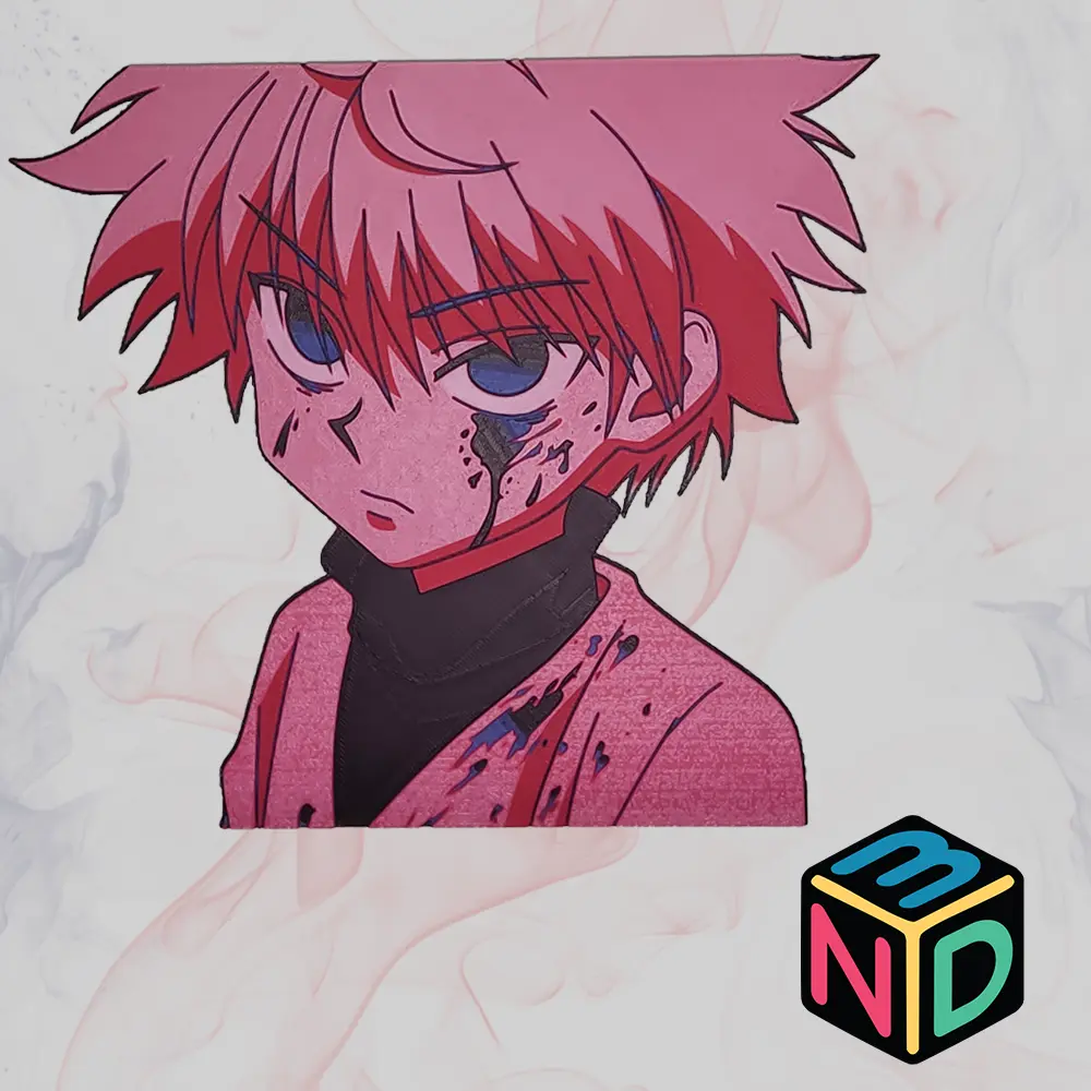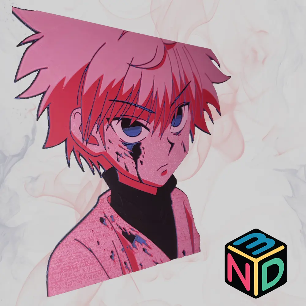Witness the chilling transformation of the Zoldyck assassin with this spine-tingling 3D printed portrait of Killua’s legendary death stare. Gone is the playful child – what emerges is the cold, calculated killer trained from birth, with those piercing blue eyes that promise swift and merciless death.