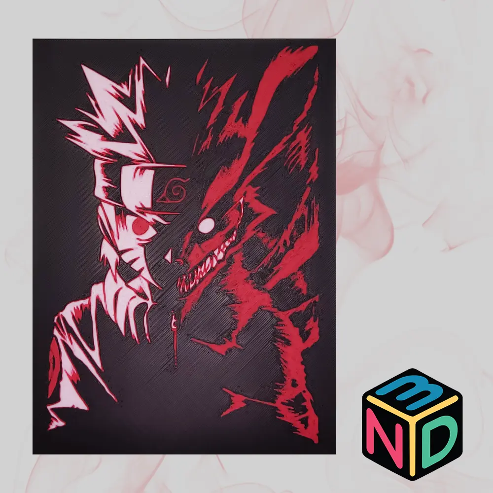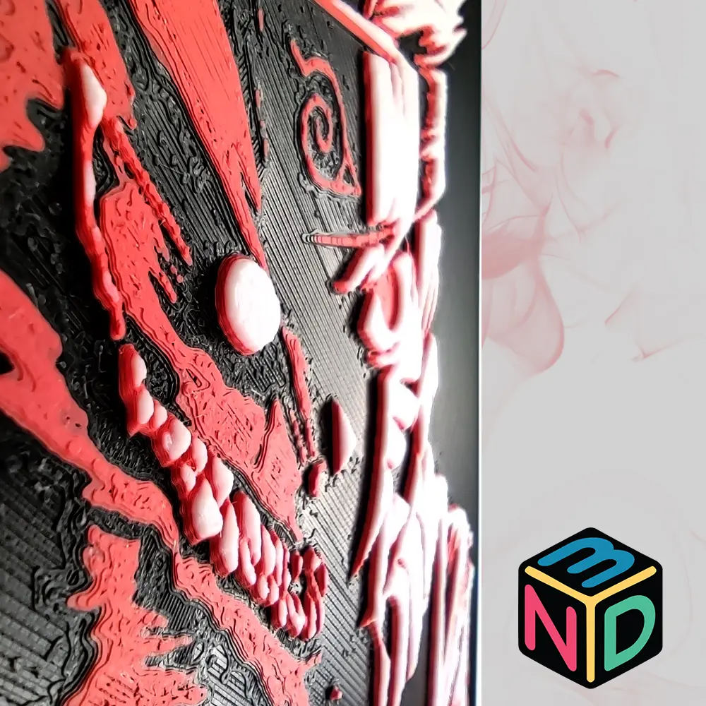 Witness the raw power of the Nine-Tails with this stunning 3D printed portrait capturing Naruto’s legendary fox transformation. One half reveals Naruto’s determined human features, while the other unleashes the fierce, primal essence of Kurama – creating a dramatic split that showcases the bond between jinchuriki and tailed beast.